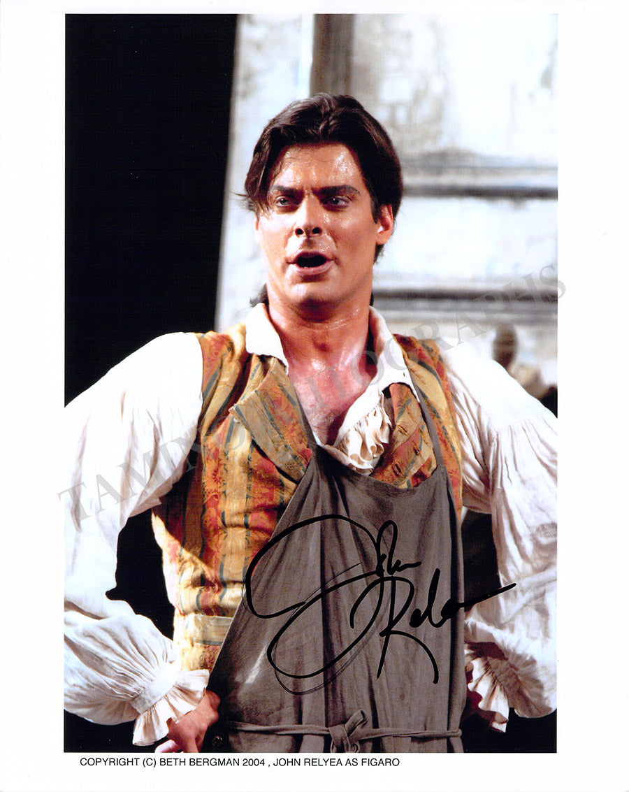 Canadian bass-baritone (b.1972). Signed photograph, shown as Figaro in Mozart's Nozze di Figaro. Photo by Beth Bergman, Metropolitan Opera, New York. Size is 8 x 10 inches, in excellent condition.