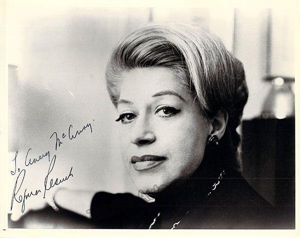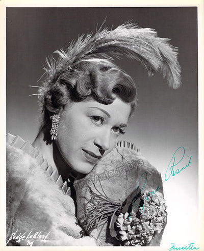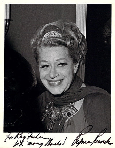 Signed photograph, shown as herself, backstage, inscribed. Stamped on verso by photographer Ray Fisher, Miami. Size is 7.75 x 10 inches, in excellent condition.