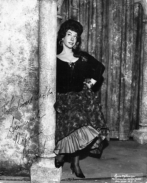 Signed photograph, shown in the title role of Bizet's Carmen, inscribed. Photo by Louis Melancon, Metropolitan Opera. Size is 8 x 10 inches, several creases on corners, otherwise in good condition.