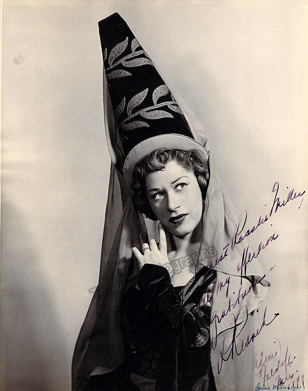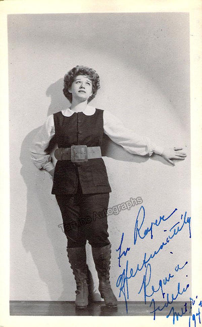 Signed photograph, shown in role (likely Orlofsky in Johan Strauss's Die Fledermaus), inscribed. Size is 8 x 10 inches, in excellent condition.
