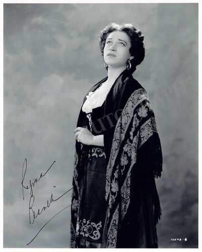 Signed photograph, shown in role (possibly Puccini's Tosca). Size is 6.5 x 8.5 inches, in excellent condition.