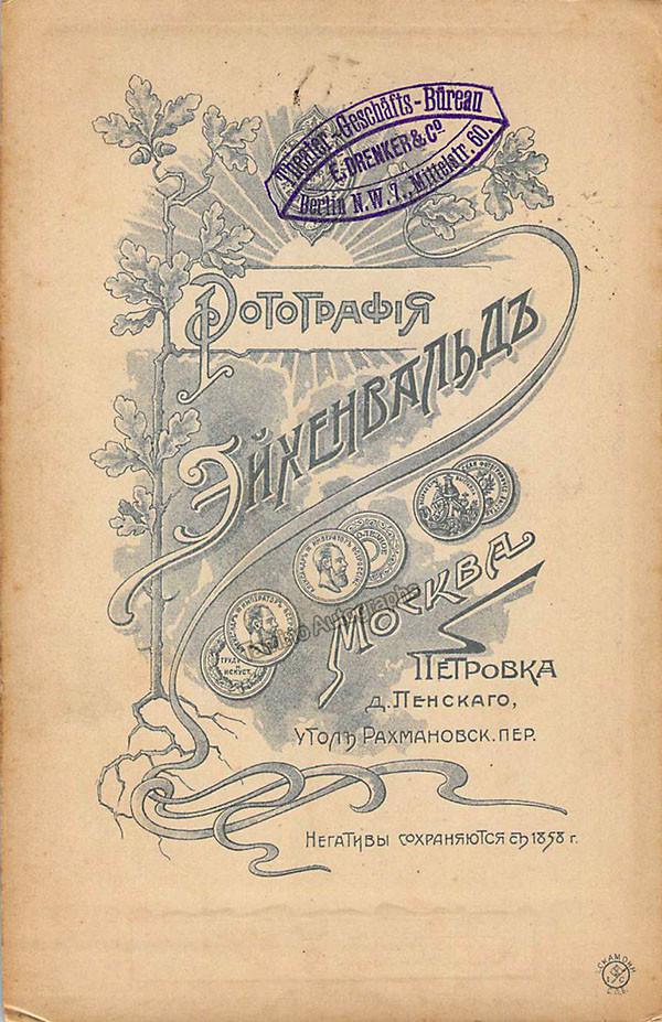 Gorgeous cabinet photograph signed by her, shown as herself; photo by Eichenwald, Moscow.  Size is 4.25 x 6.5 inches, in excellent condition.