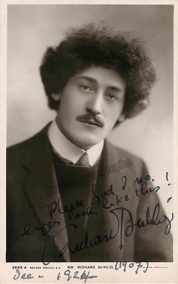Signed photo postcard, dated in 1924, wrote the date when this photo was taken (1907, at age 27), and "Please God I no longer look like this!" on top of his signature. Size is 3.5 x 5.5 inches, in excellent condition.