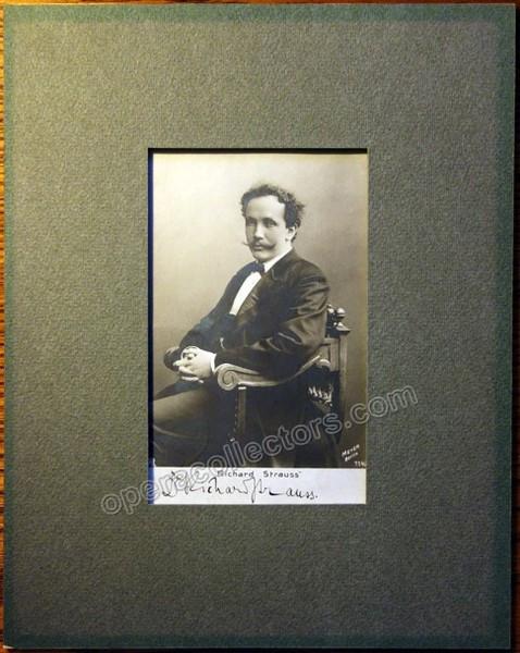 German opera composer (1864-1949), one of the greatest of the 20th century. Beautiful signed photo postcard, 3.25 x 5.25 inches, mounted on a green mat. Some silvering, otherwise in very fine condition, ready to frame!