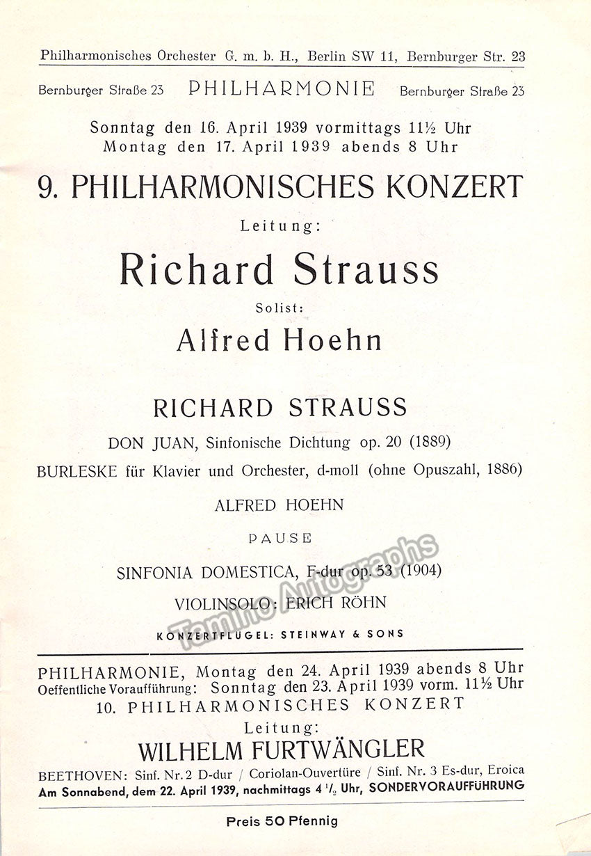 Strauss, Richard - Concert Program Berlin 1939 Strauss, Richard - Concert Program Berlin 1939