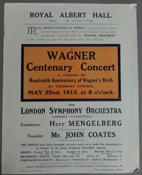 Richard Wagner - Birth Centenary Concert at Royal Albert Hall 1913