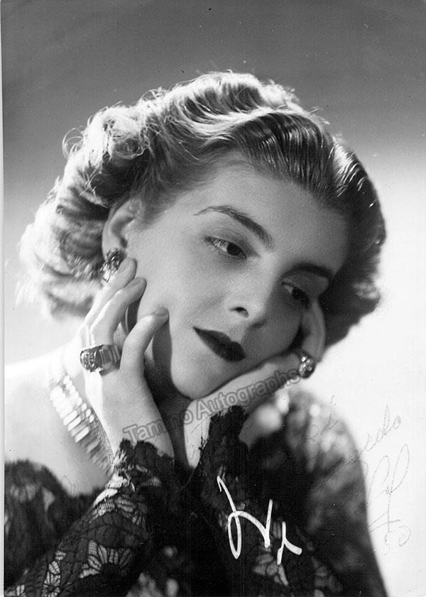 Signed photo, shown in role (possibly Violetta in Verdi's La Traviata), inscribed and dated in 1948. Size is 4.5 x 7 inches, mounting traces on verso, otherwise in excellent condition.