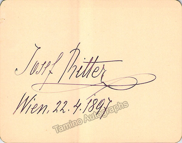 Austrian baritone (1859-1911), signed card, signed in Vienna in 1897. Ritter was one of the leading baritones of his day, performing frequently in Salzburg and many other German theaters. Rare item with bold and clear handwriting and signature. Size is 3.5 x 4.25 inches, in excellent condition.