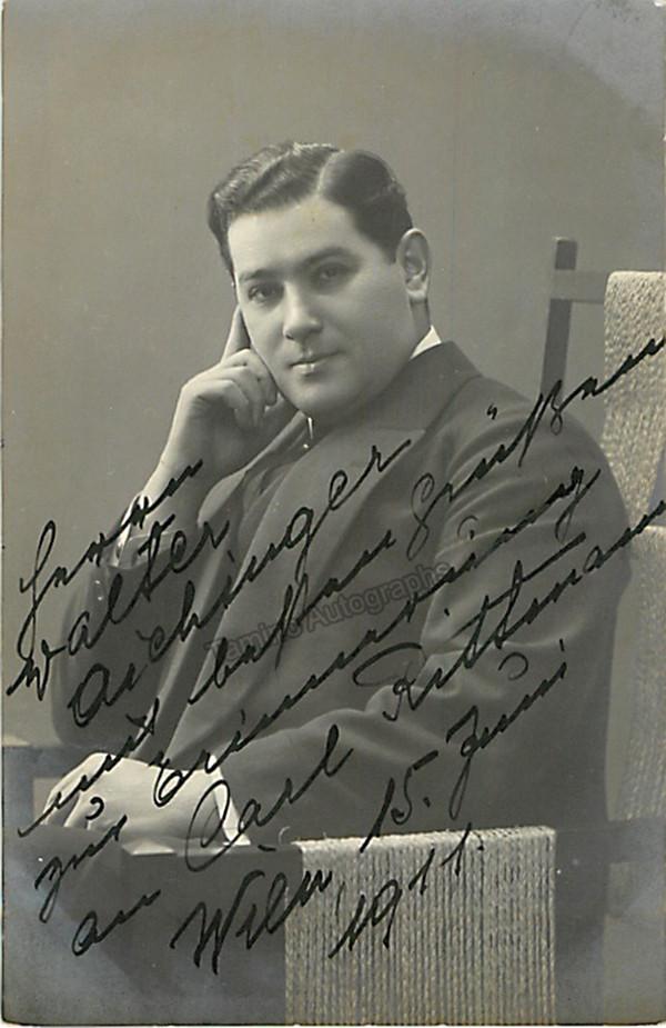 German baritone (1879-?).  Signed photo postcard, inscribed and dated by him in Vienna, 1911. Size is 3.5 x 5.25 inches, excellent condition.
