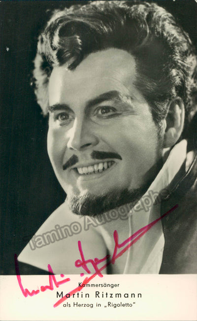 Signed postcard photograph, shown as the Duke in Verdi's Rigoletto. Size is 3.5 x 5.25 inches, in excellent condition.