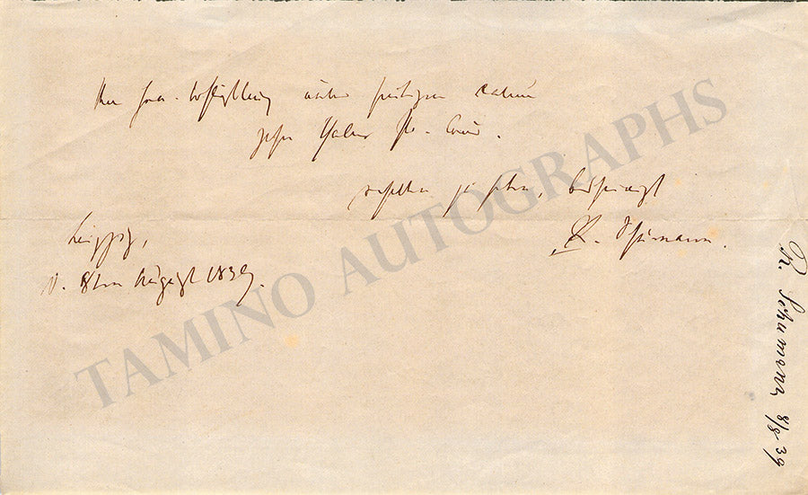 Schumann, Robert - Autograph Note Signed 1839 Schumann, Robert - Autograph Note Signed 1839