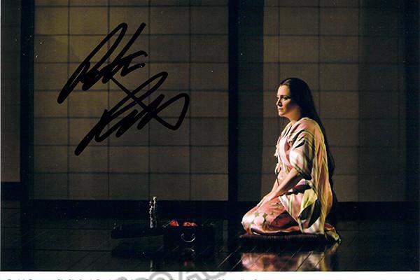 American soprano (b.1965), signed photo, shown in the title role in Madama Butterfly, at the Metropolitan Opera. Size is 4 x 6 inches.