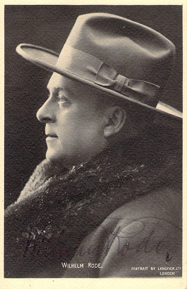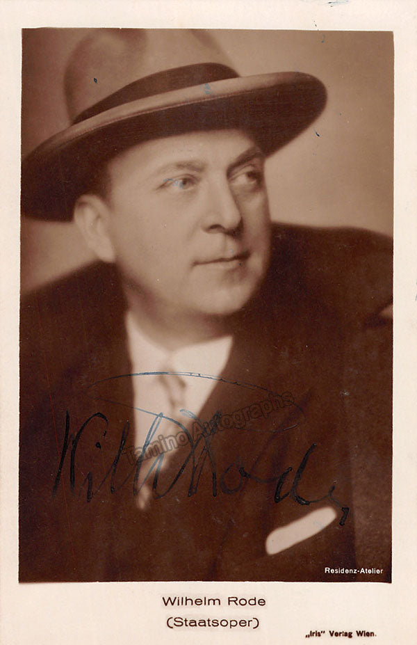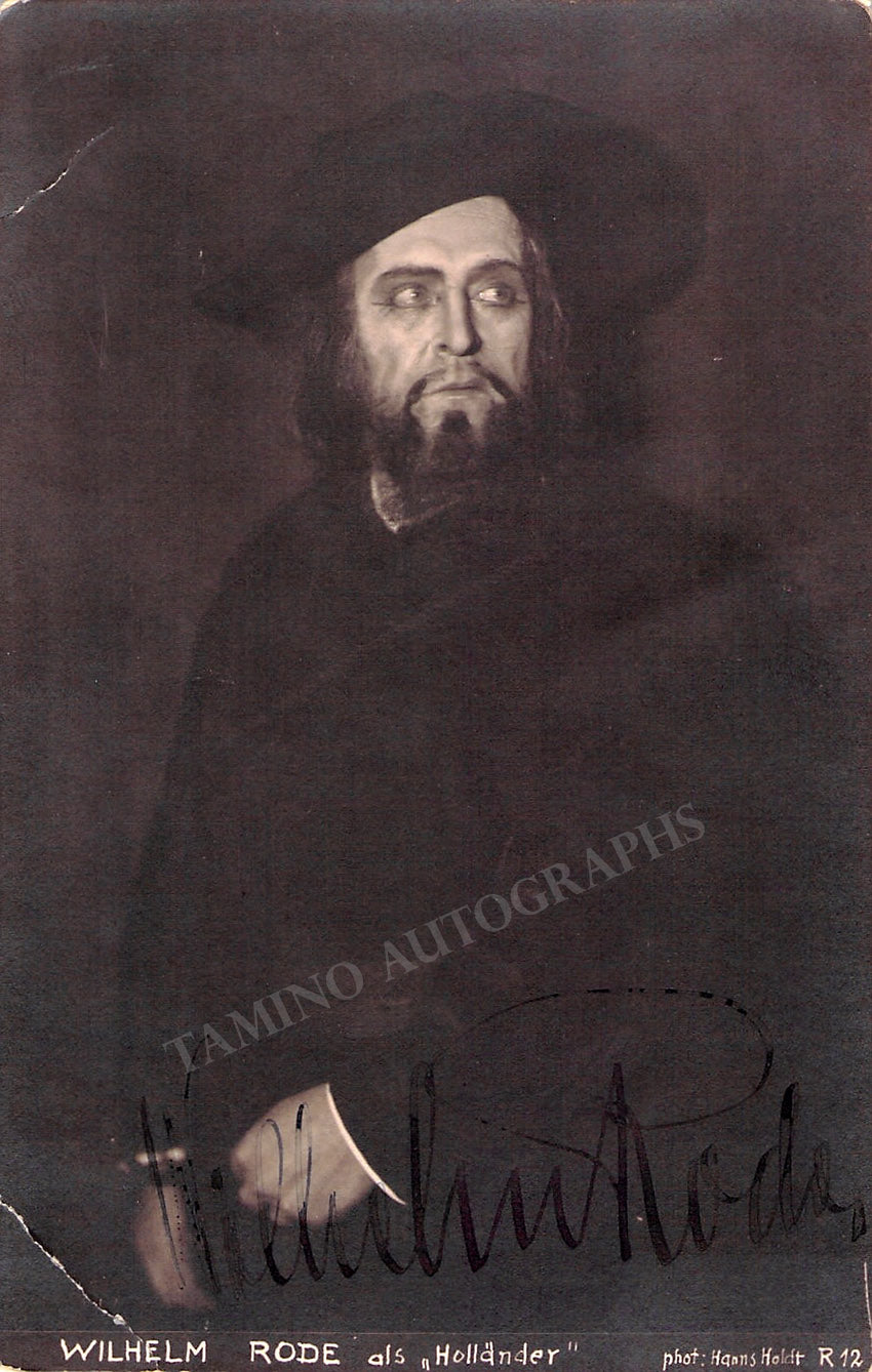 Signed postcard photograph, shown in the title role of Wagner's Die Fliegende Hollander, signed in Vienna. Photo by Hans Holdt. Size is 3.5 x 5.5 inches, in excellent condition.