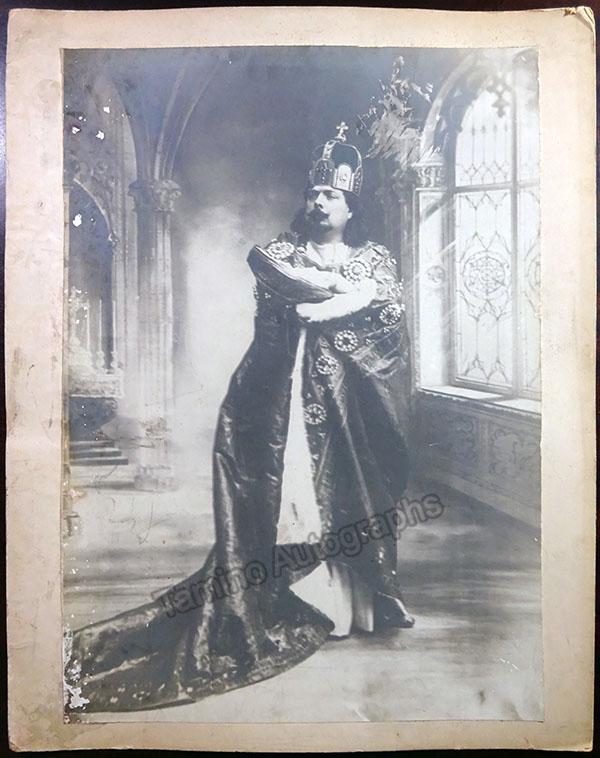 French tenor (1815-1879) who created the role of Jean de Leiden in Meyerbeer's opera Le Prophete (1849), here shown as Jean de Leiden.  Total size is 13.3 x 17.25 inches, photo is 11 x 15.75 inches, some dirt and water damage over left border.  Photo looks like an oversized copy of a smaller photo of the singer.