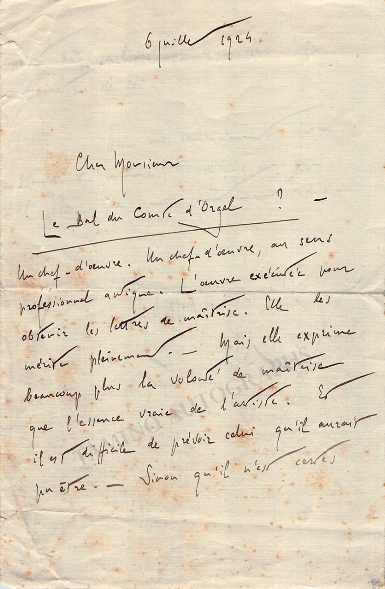 French dramatist (1866-1944), novelist adn art historian, Nobel Prize of Literature in 1915. Autograph Letter Signed in one large folder sheet, written in two separate pages, written in French (sold untranslated) and dated in 1924. Each one is 5.5 x 8.4 inches in size, folds, minor rust stains, in very good condition.