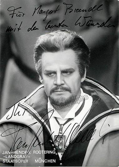 German bass-baritone (b.1950).  Signed photo shown as Hermann in Wagner's Tannhäuser at Munich State Opera; inscribed.  Stamped on verso by photographer Anne Kirschbach. Size 4 x 5.75 inches, in very good condition.
