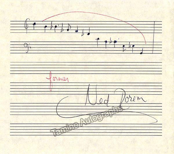 American composer (b.1923) and pianist.  Autograph music quote with 1 bar of music, signed by him.  Size is 8.5 x 7.5 inches, in excellent condition.