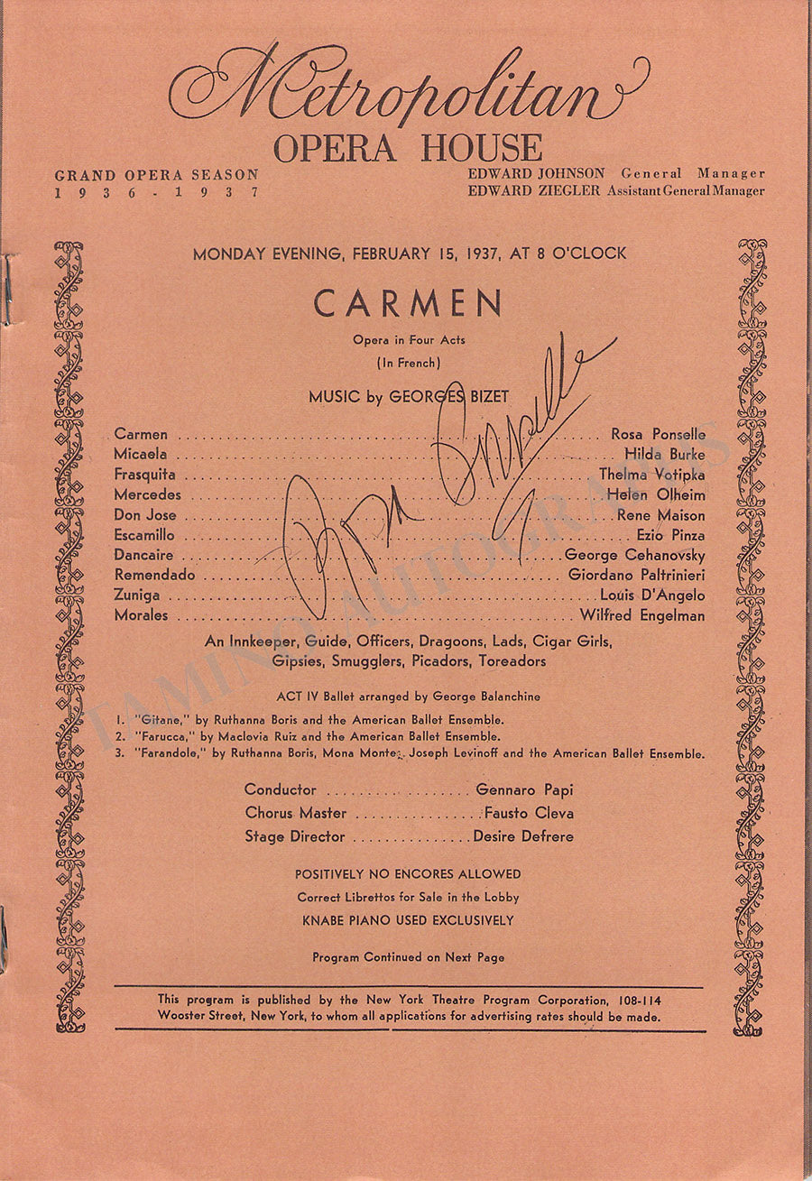 Ponselle, Rosa - Signed Booklet 1968 Ponselle, Rosa - Signed Booklet 1968 Ponselle, Rosa - Signed Booklet 1968