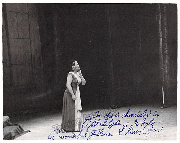American soprano (1932-2020), large signed photo, shown in title role of Verdi's Aida, inscribed to photographer Mark Hagmann, Philadelphia whose name is stamped on verso. Size is 8 x 10 inches, in excellent condition.