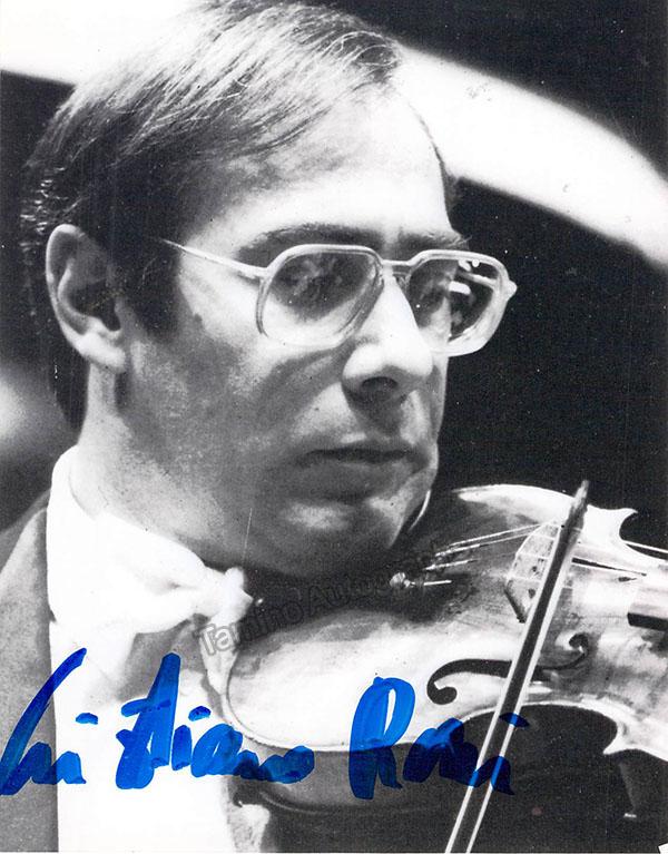Italian violinist (b.1947), with an important career as a teacher. Signed photo, sized 4.25 x 5.5 inches, tape on verso, in excellent condition.