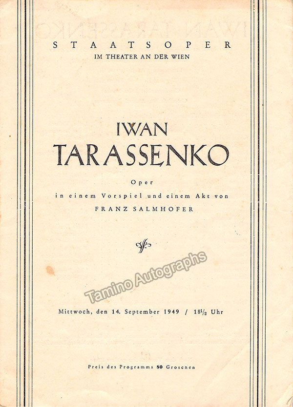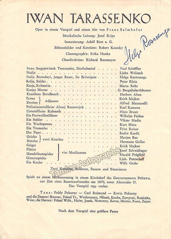 Roswaenge, Helge - Set of 3 Signed Opera Programs Vienna 1949