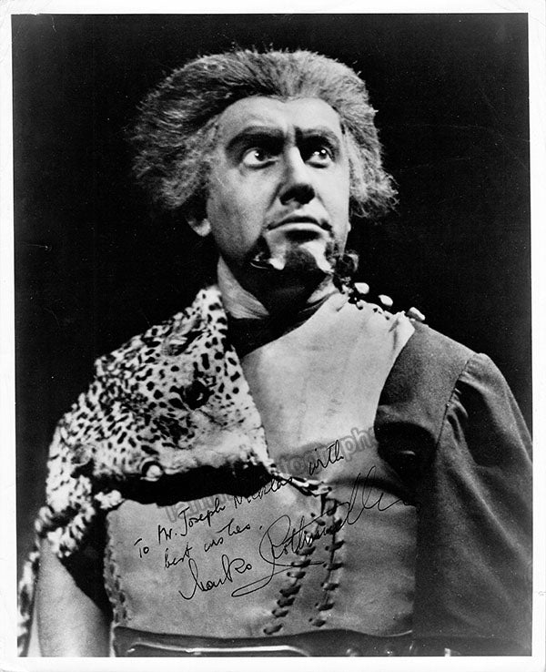 Signed photograph, shown in the title role of Berg's Wozzeck, inscribed. Stamped on verso by photographer Carmen. Size is 3.5 x 5.75 inches, small crease on top left, otherwise in very good condition.