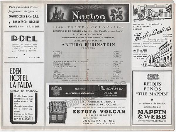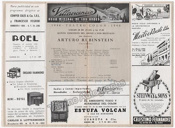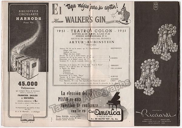 Rubinstein, Artur - 4 Concert Programs - Teatro Colon, Buenos Aires, 1