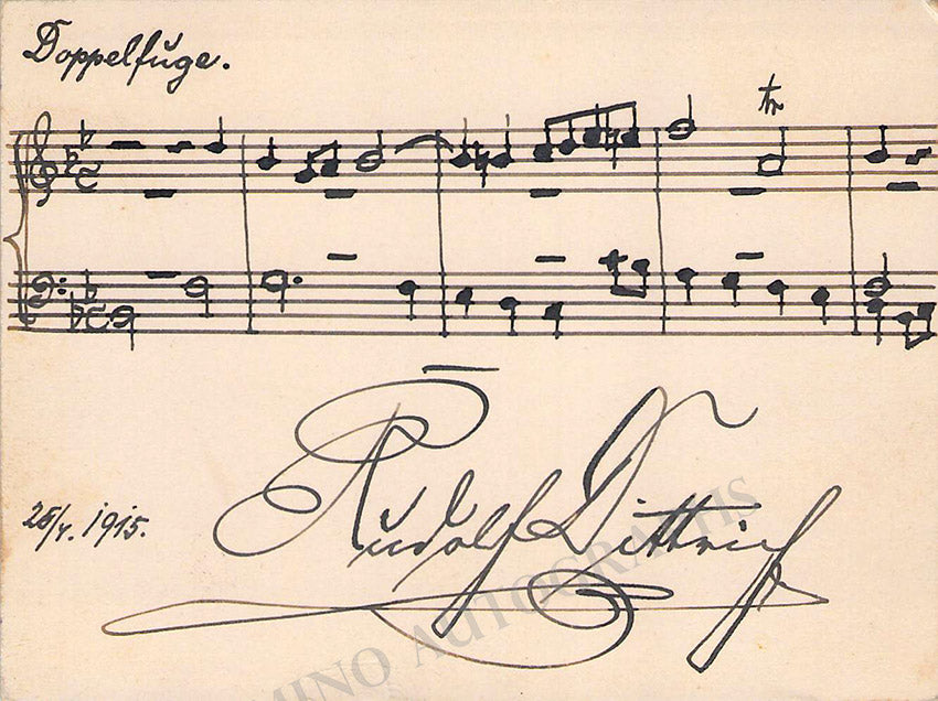 Dittrich, Rudolf - Autograph Music Quote Signed 1915