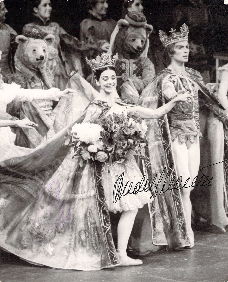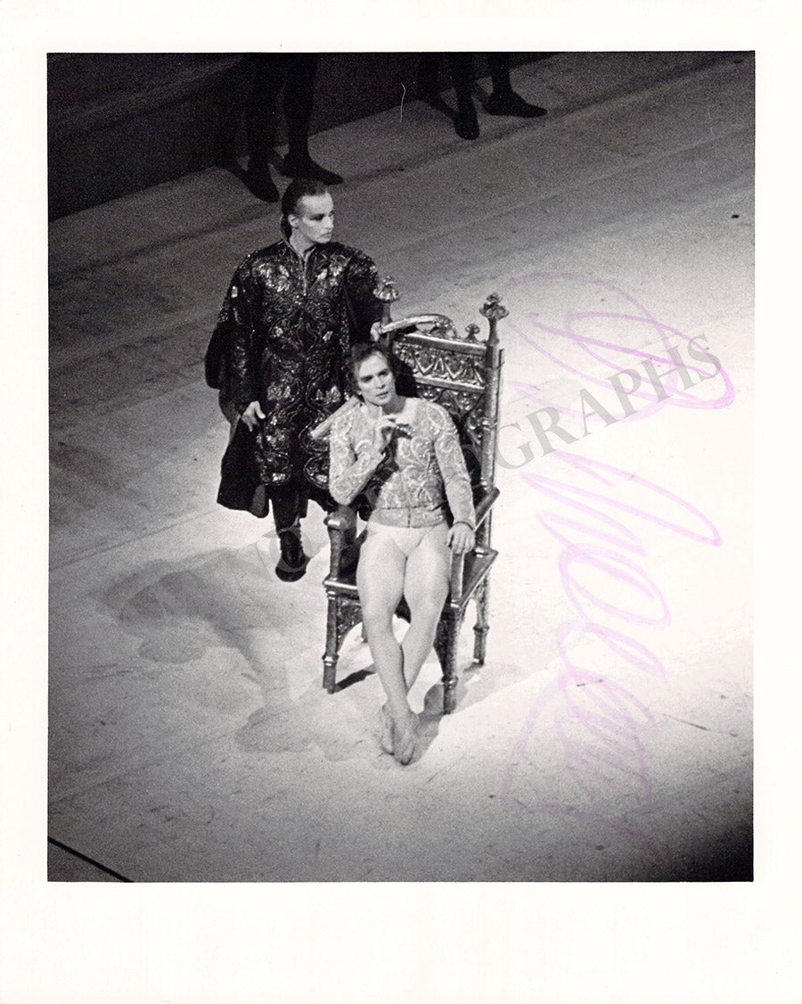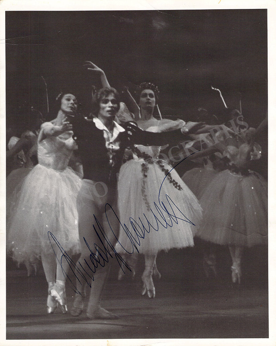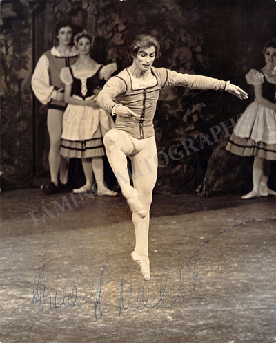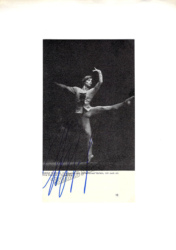 Black-and-white half-tone photograph (a page from a program or magazine) signed by him, shown in Swan Lake, mounted on a white sheet. Total size is 8.25 x 11.6 inches, photo is 4.3 x 7.6 inches, in excellent condition.
