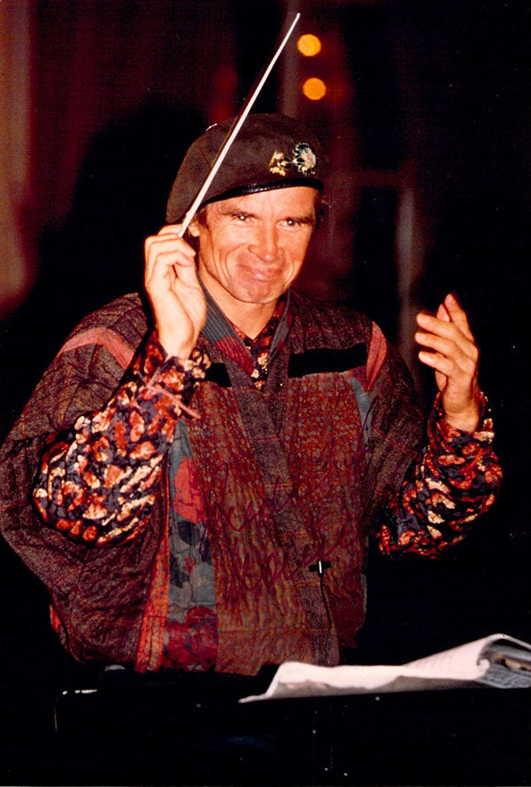 Beautiful informal funny color photograph signed by him, shown 'conducting'. Size is 5 x 7.3 inches, in excellent condition.