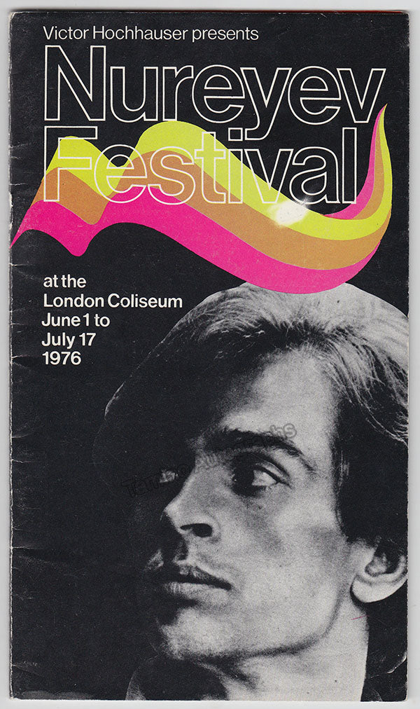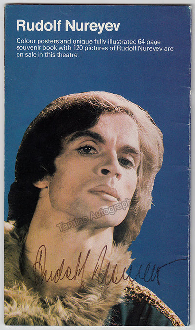 Original brochure for the Nureyev Festival at London Coliseum held between June and July 1976 signed by Nureyev on the verso of the front cover. Size is 5.25 x 9 inches, full brochure, in very good condition.