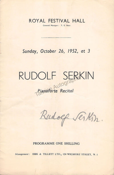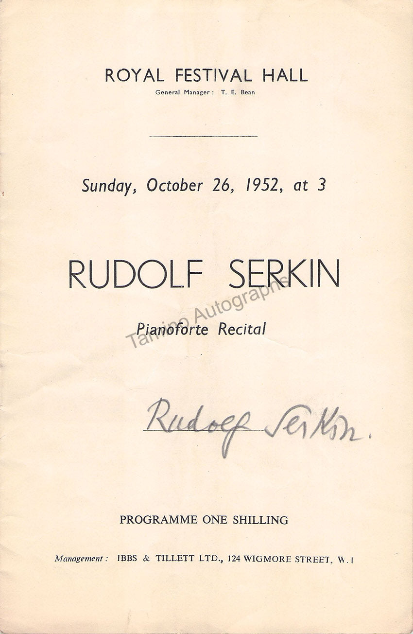 Program for a piano recital by the celebrated American pianist at The Royal Festival Hall, London, on July 26th, 1952, signed by him on the front cover.