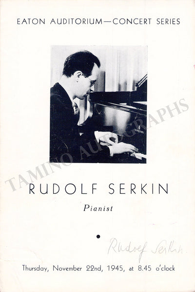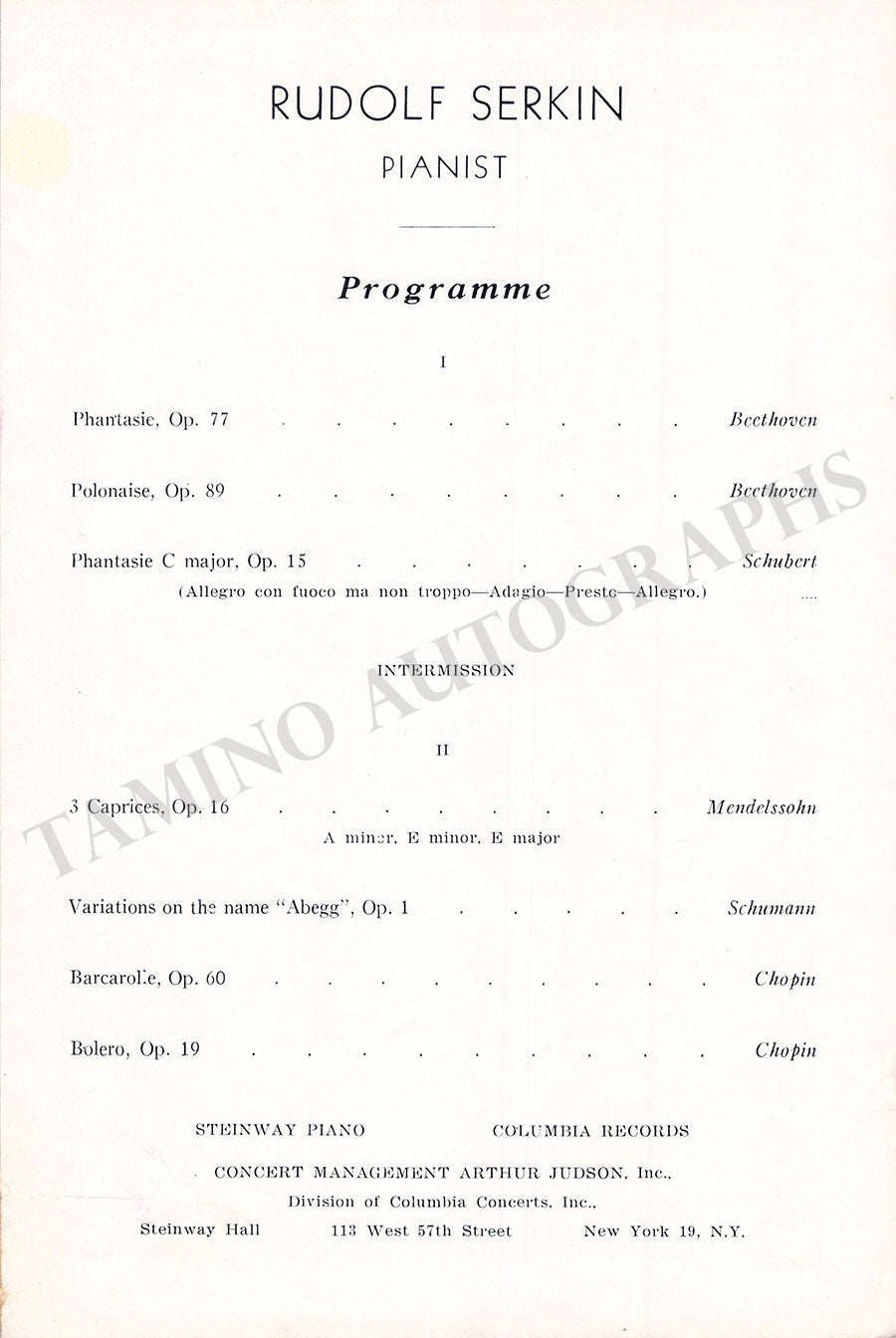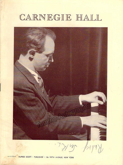 Program for a performance at the Carnegie Hall, New York, 1943, signed by the Czech pianist in pencil on the front cover. Full program (14 pages) plus covers, size is 7.6 x 10.25 inches, in excellent condition.