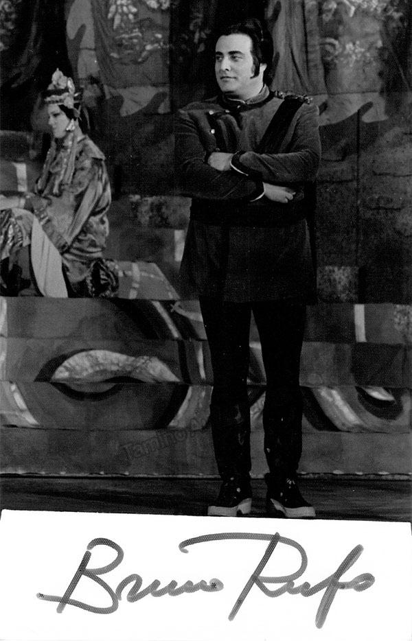 Italian tenor (b. 1941), signed photo, shown as Calaf in Puccini's Turandot. Size is 3.5 x 5.5 inches, in excellent condition.