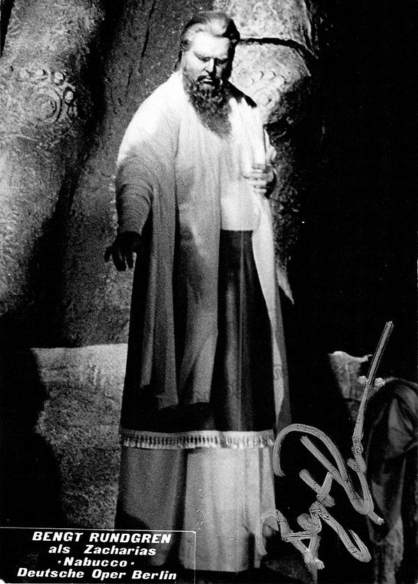 Swedish bass (1931-2008), signed photo, shown as Zacharias in Verdi's Nabucco at Deutsche Oper, Berlin. Size is 4 x 5.75 inches, in excellent condition.