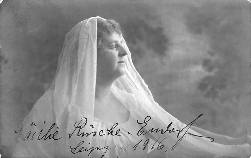 German soprano (1873-1939), signed photo postcard, shown in role, signed in Leipzig, dated in 1916. Bold handwriting and signature. Photo by Fritz Reinhard of photo studio Atelier Perscheid, Leipzig. Size is 3.5 x 5.5 inches, slight paper loss on edges, otherwise in excellent condition.