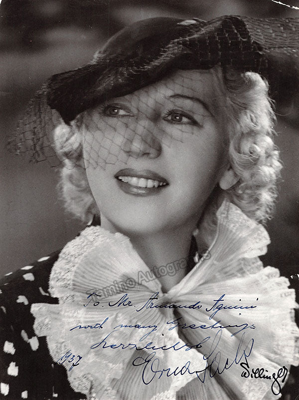 German coloratura soprano (1898-1972), signed photograph, shown possibly in role, inscribed and dated in 1937. Handwritten signature on front of photographer Willinger. Size is 6.25 x 8.25, very small creases and bends at bottom of photo, otherwise in excellent condition.