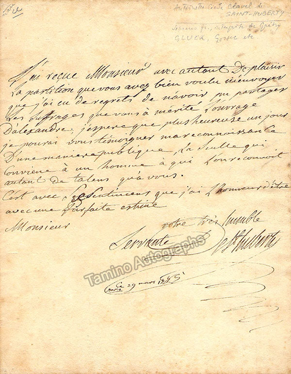 Saint-Huberty, Antoinette Cecile - Autograph Letter Signed 1785