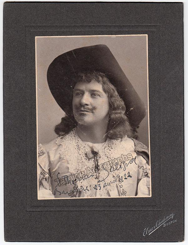 French tenor (1867-1943), signed photo, shown in role, dated in Barcelona in 1922. Photo by Elmer Chickering, Boston. Photo size is 3.75 x 5.25 inches, mounted onto attractive mat, total item is 6 x 8 inches, in excellent condition