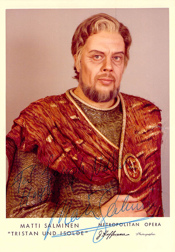 Signed photograph, shown as King Marke in Wagner's Tristan und Isolde, inscribed. Photo by James Heffernan, Metropolitan Opera, New York. Size is 5 x 7 inches, crease running along the right side, otherwise in very good condition.