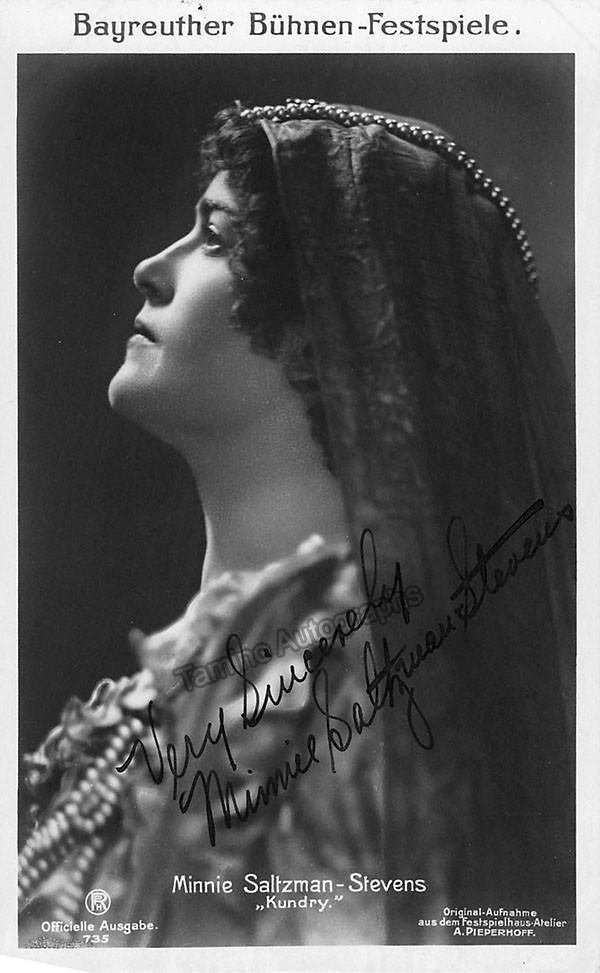 American soprano (1874-1950), signed photo postcard, shown as Kundry in Parsifal, at Bayreuth Festival. Size is 3.5 x 5.4 inches, in excellent condition.