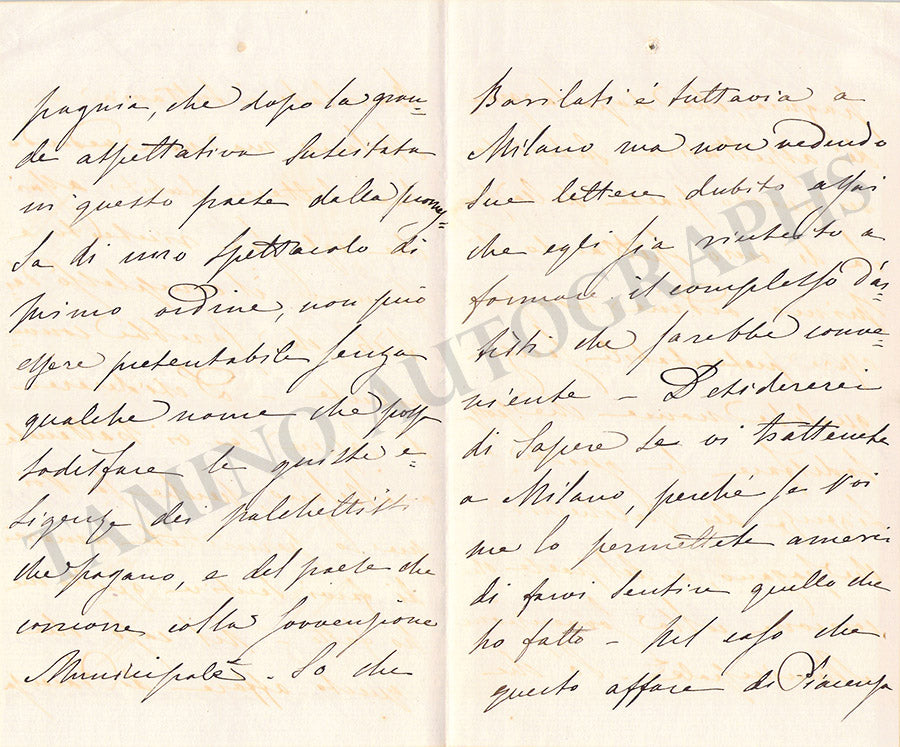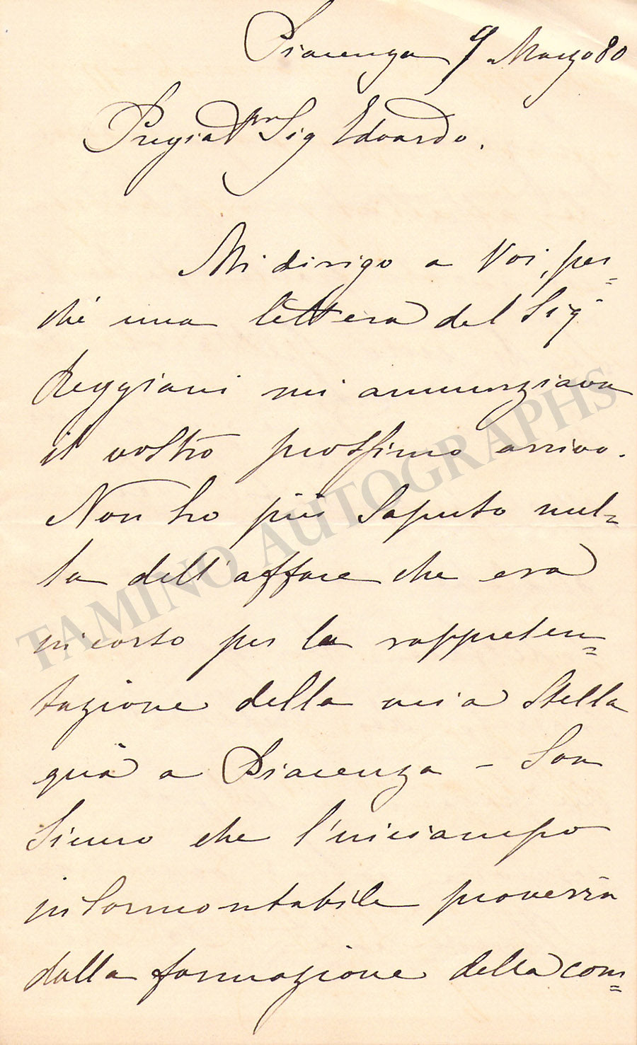 Autograph letter in Italian (untranslated) signed by him. Size is 4.25 x 6.9 inches, 4 written pages in one folded sheet, in excellent condition.