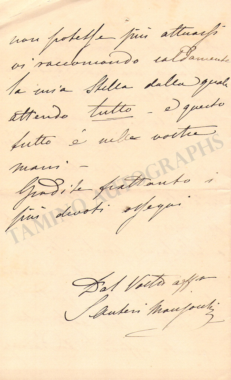 Manzocchi, Salvatore Auteri - Autograph Letter Signed