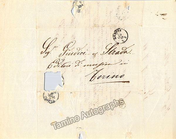 San Fiorenzo, Cesare - Autograph Letter Signed 1861 - Tamino San Fiorenzo, Cesare - Autograph Letter Signed 1861 - Tamino
