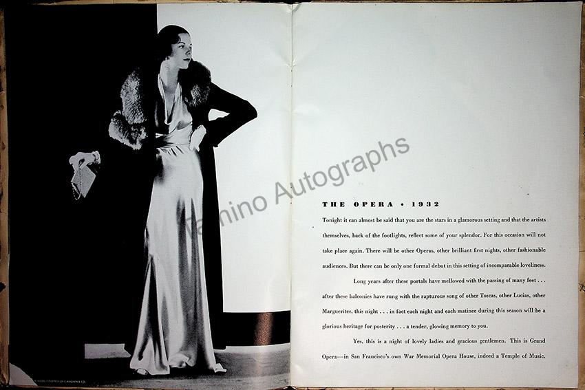 Program for the gala performance for the opening of the San Francisco War Memorial Opera House in 1932. The company had been founded in 1922 by Gaetano Merola, and is today one of the most important companies in the west coast of the United States.