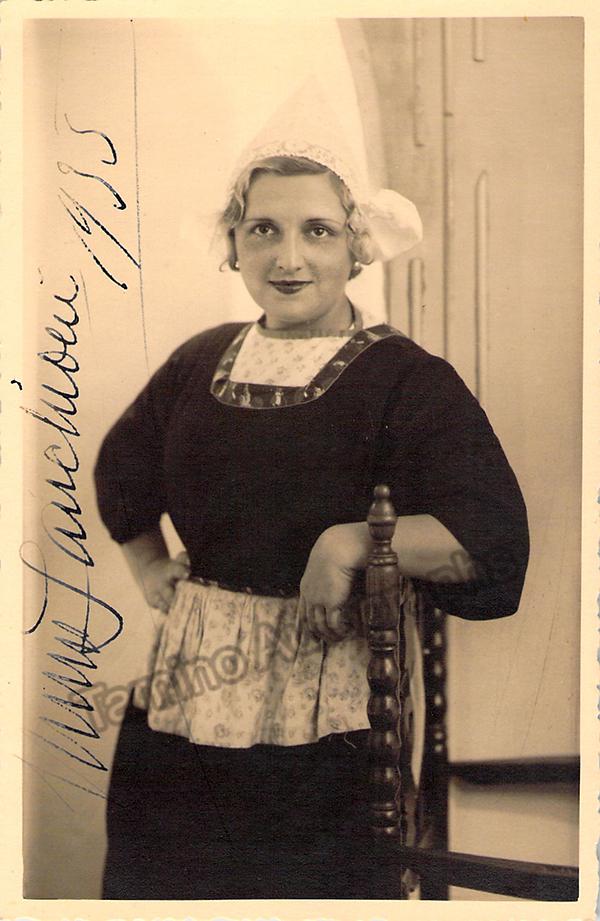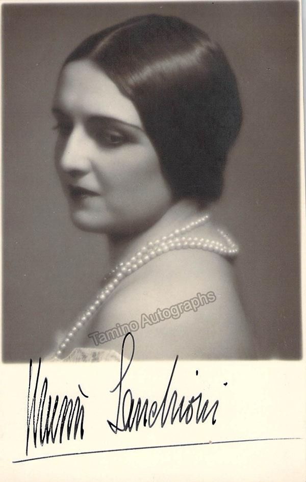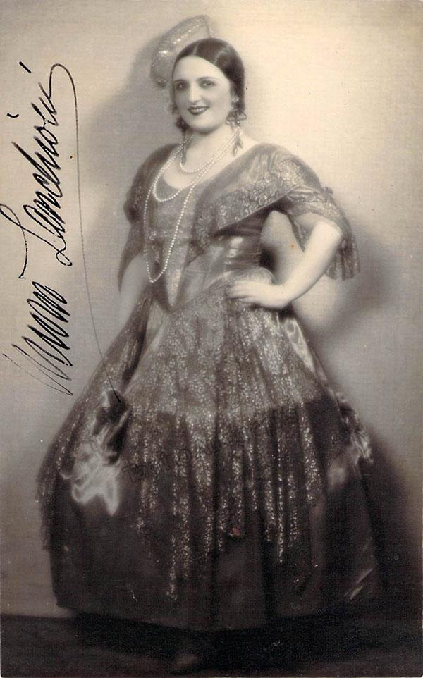 Signed photo postcard, shown in role. Stamped on verso by photographer A. Monacchini, Parma. Size is 3.25 x 5.25 inches, small stain at top left on verso, otherwise in excellent condition.