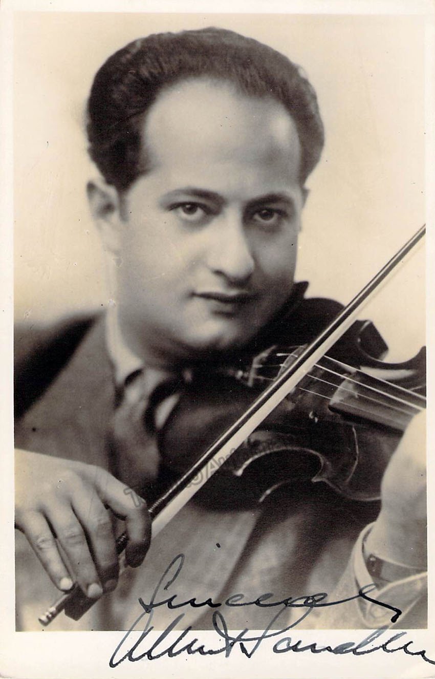 British violinist and conductor (1906-1948), one of the most popular orchestra leaders in England in the period between the two World Wars. Beautiful signed photo postcard, shown playing the violin. Size is 3.5 x 5.5 inches, in excellent condition.