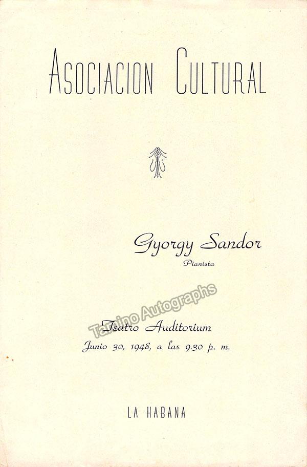 Program for a performance of the Hungarian pianist at Teatro Auditorium, Havana, Cuba, on July 30th, 1948, signed by him on the program page.  Size is 6.2 x 9.25 inches, 4 pages, in excellent condition.