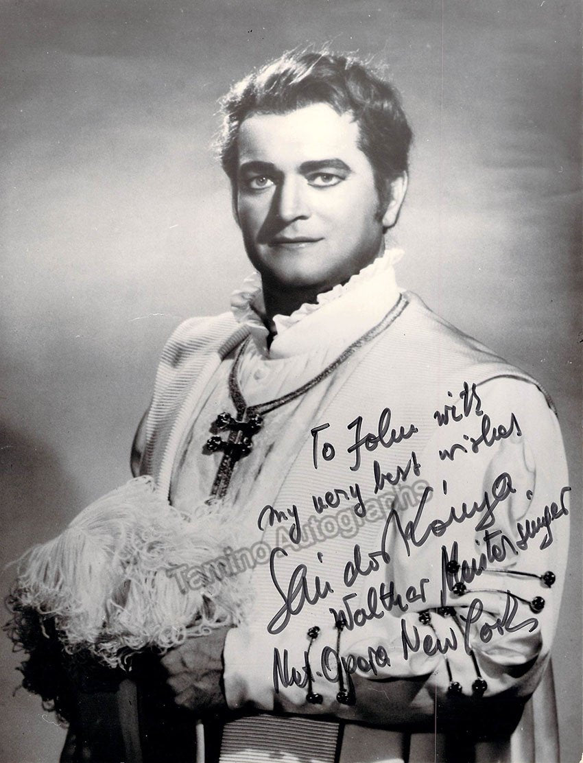 Hungarian tenor (1923-2002), who developed a great career across Europe and sang for 14 years at the Metropolitan Opera in many different roles. Signed photo, shown as Walther in Wagner´s opera "Die Meistersinger von Nurnberg", inscribed. Size is 7 x 9.5 inches, beautiful, in very good condition.