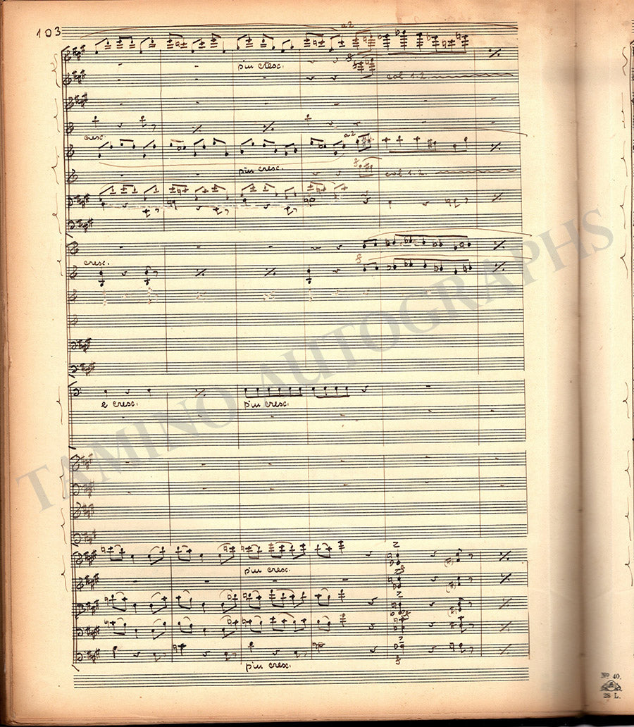 Bound autograph manuscript with the full score of the composer's Third Symphony. Size is 11 x 13.75 inches, 167 pages plus hard covers, in very good condition.
